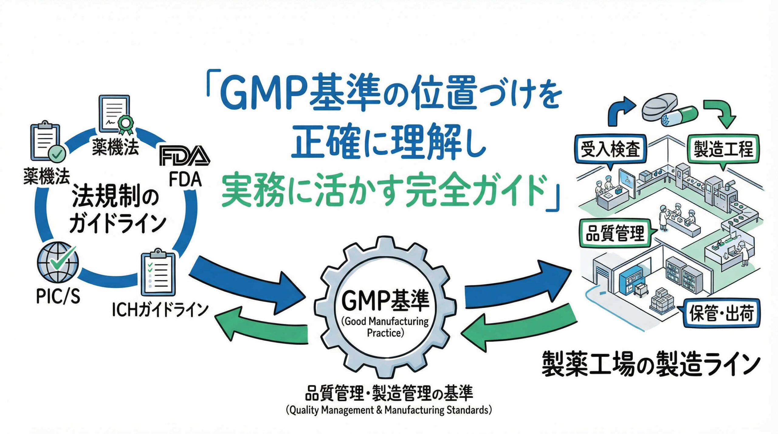 日本においてGMPは、いわゆる「薬機法(医薬品、医療機器等の品質、有効性及び安全性の確保等に関する法律)」に基づき、厚生労働省令として定められています。これは任意のガイドラインではなく、法的拘束力を持つ「省令」である点が極めて重要です。